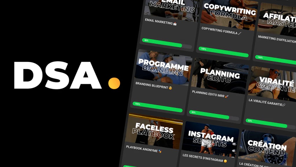 La Formation DSA – The Digital Success Academy est un programme en ligne complet qui vous apprend à créer, vendre et automatiser un business digital rentable, même sans compétences techniques.